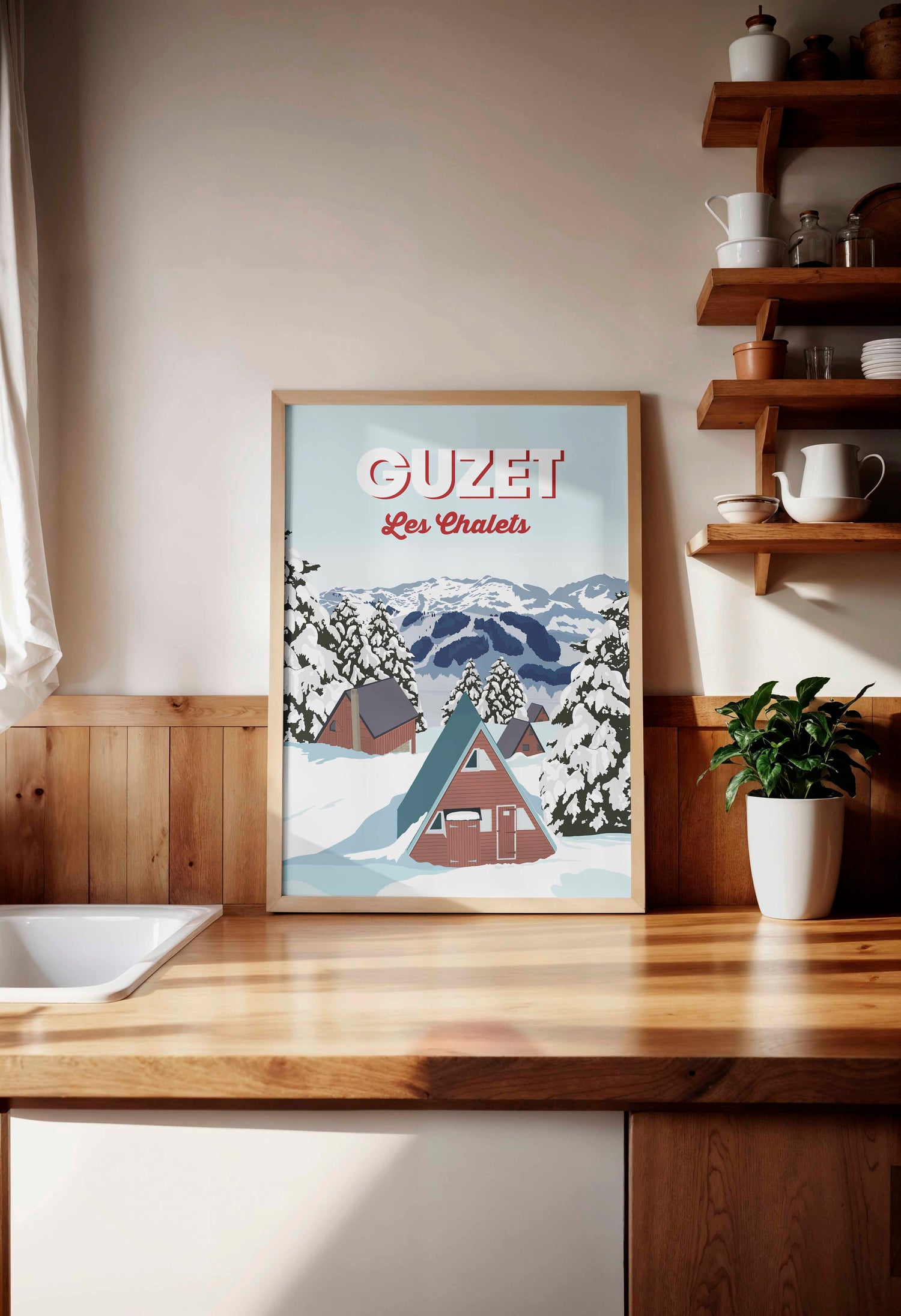 Guzet dans son ambiance unique : des chalets enneigés et l’atmosphère d’une station ariégeoise iconique. Une illustration pensée pour ceux qui aiment ce coin hors du temps.