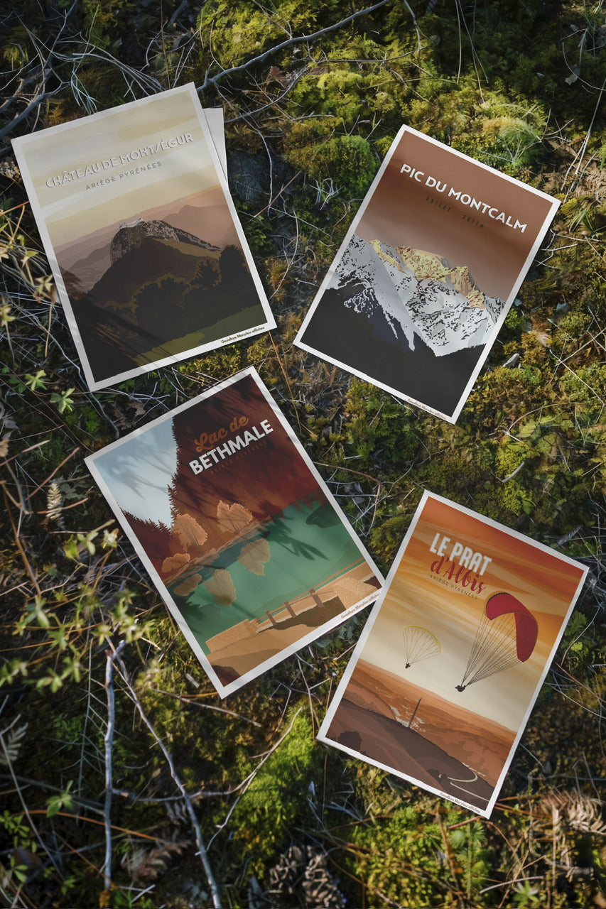 L’aventure à commencé au cœur de l’Ariège, à Foix, avec l’envie de proposer des affiches pour décorer vos foyers avec des illustrations mettant à l’honneur tous les paysages qui font de notre beau département un endroit incroyable à explorer.
